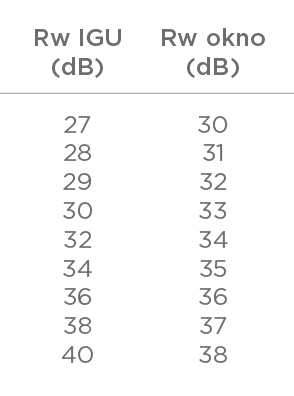 Presupunând că fereastra (etanșată) este corect instalată și că se asigură o etanșare adecvată între toc și canat, performanța Rw a geamului termoizolant (IGU) are cea mai mare influență asupra Rw al ferestrei, iar în majoritatea cazurilor aceasta este componenta analizată cu atenție. Rw-ul ferestrelor este determinat conform EN1451-1 până la o valoare Rw de 40 dB pentru IGU; peste această valoare, doar experimental, în laborator.