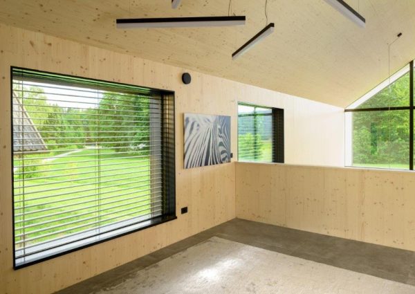 Casa unifamilială C din Lesce reunește toate spațiile private într-o singură unitate rezidențială, într-un plan semi-deschis. Volumul pe două niveluri conferă designului clasic al casei o senzație aerisită, deschisă și multă lumină naturală pe tot parcursul zilei. Zonele de zi și cele de serviciu sunt bine conectate, de la hol la bucătărie și living, garderobă și saună. Designul casei urmărește obiceiurile și rutina locatarilor. La etaj se află zonele private – dormitoare și băi. Materialul de construcție este lemnul, vizibil integral în interiorul clădirii.