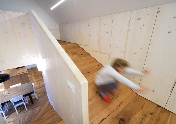 Urmărind terenul, casa tratează fâșia îngustă de pământ ca pe o oportunitate.