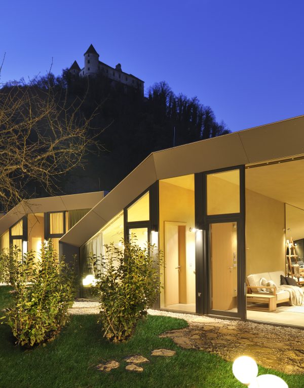 Casa este situată pe un deal abrupt, orientat spre sud, cu vedere la mlaștinile Ljubljana. Configurația terenului a impus crearea a două platouri de elevație exterioară. Platoul inferior cuprinde drumul de acces și intrarea principală în casă.