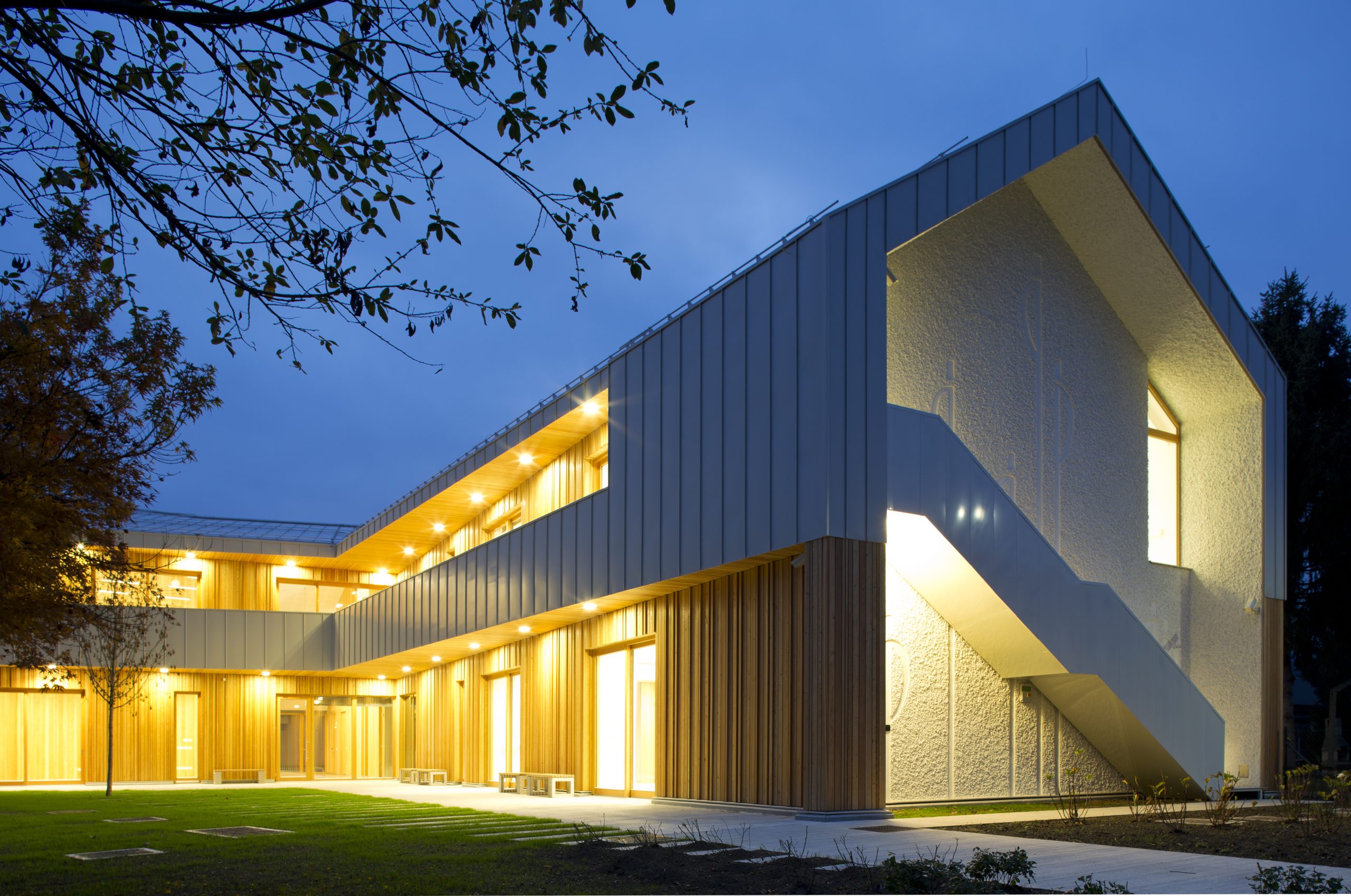 Centrul de Îngrijire și Muncă INCE oferă servicii sociale de îndrumare, îngrijire și angajare în condiții speciale, precum și îngrijire instituționalizată pentru persoane cu dizabilități intelectuale moderate și severe. Clădirea este situată lângă un pârâu, pe un teren alungit. Designul său urmează tipologia nucleului satului și organizarea vechilor gospodării, cu o împărțire între curtea de la drum și grădina privată de lângă pârâu. Utilizarea elementelor tipice construcțiilor tradiționale slovene – „gankul” (balcon), lemnul, streașina și acoperișul în două ape – estompează dimensiunea clădirii și o aduce mai aproape de scara caselor din jur. Forma variată a acoperișului în două ape unește clădirea într-un tot unitar.